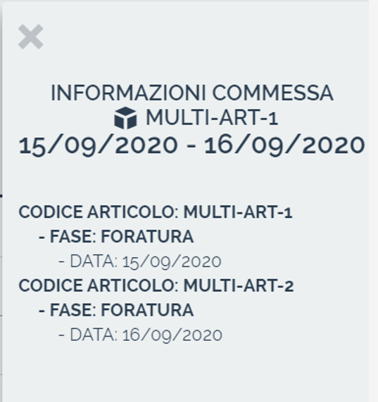 Tramite la schermata dello schedulatore, facendo click col tasto destro su un articolo o una commessa apparirà una voce «Informazioni attività». Sulla destra apparirà un pannello