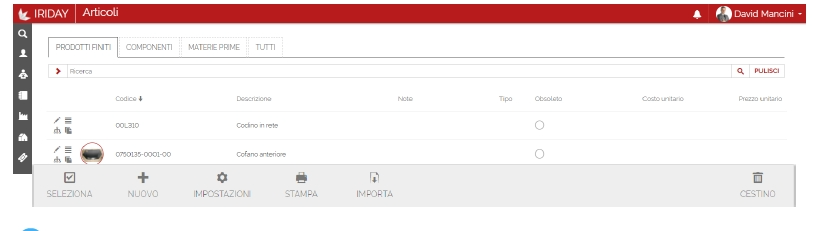 Gli articoli sono i pezzi (prodotto finito, componentistica o materie prime) necessari alle produzioni della tua azienda.