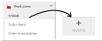Vai sul menù Produzione > Articoli e clicca sul tasto NUOVO presente nella barra degli strumenti.