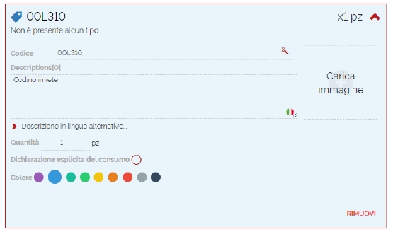 1) Clicca sull’icona della lente d'ingrandimento (il sistema ti fa aggiungere un componente dall’elenco dei tuoi articoli inseriti oppure clicca sull’icona "+" per creare un nuovo articolo da questa schermata)