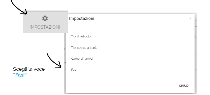Clicca su IMPOSTAZIONI sul menù Produzione > Articoli.