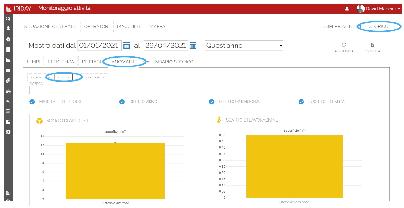 In questa sezione vengono riepilogati gli scarti di produzione con i relativi grafici.