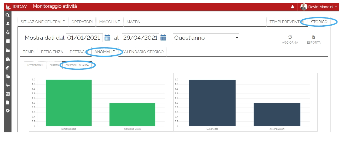 In questa sezione vengono riepilogati i controlli qualità avvenuti in produzione.