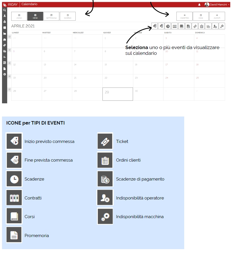 Nella sezione Agenda > Calendario puoi usufruire di un calendario dedicato alla tua azienda.