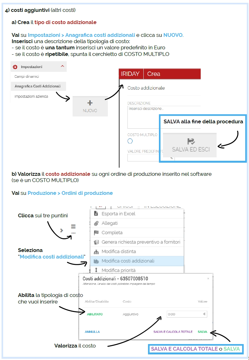 Per ottenere un’analisi corretta dei costi, inserisci i parametri in Iriday di: