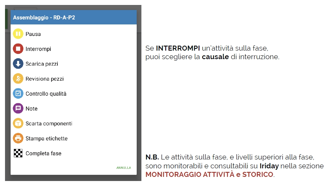 Clicca sull’icona di stato della fase per aprire la finestra con elenco di azioni sulla fase.