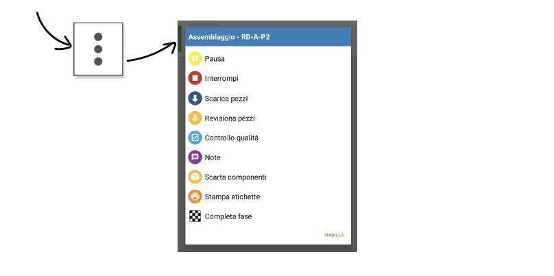 Clicca sull’icona a tre puntini per visualizzare l’elenco di ulteriori azioni possibili per la fase corrente.